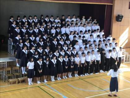 3年生は本庄中学校の生徒での最後の大きなイベントです。みんなそれぞれがそれぞれのことを思って声を出します。姿勢を整えます。