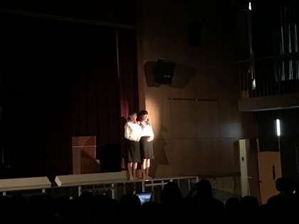 生徒会の模様氏に続き英語化の暗唱、英語部の劇です。