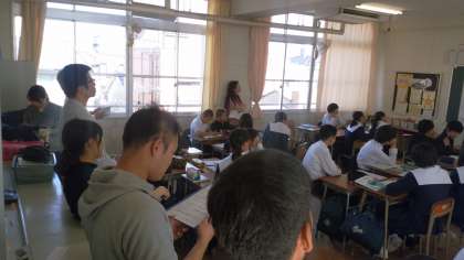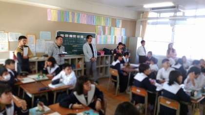 この時間も相互授業見学として、多くの先生方が授業を見に来ています。
