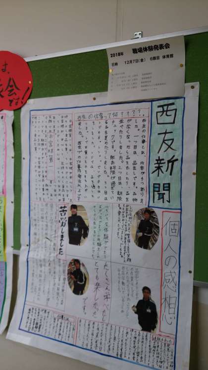 2年生はこれから、先日行いました職場体験の発表準備に取り掛かります。それぞれの場所での体験した様子を壁新聞にしていきます。