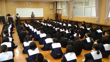 1年生の学年集会では、エガをが全てを変えていく。笑顔が自分も変えていくというお話でした。人と接するとき。「おはよう」という挨拶の時。少し笑顔にしてみたら、多くのことが変わってくる。周りの笑顔も誘い、結局は自分自身が気持ちよく過ごせる。