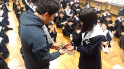 同級生の頑張りや自分自身の向上を常に思い、夢に向かって着実にコツコツと進んでいくことは、大切だと実感したこと。そして一瞬にして時間がその時代へと戻ることなどを紹介され、今という時を大切に、今の友達を大切にすることを教えてくださいました。