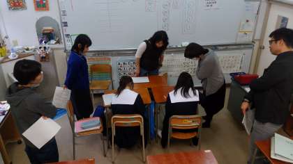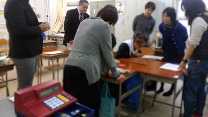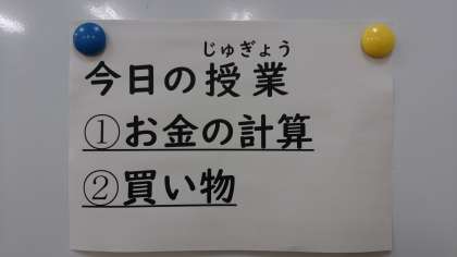 数学の授業で、お金の計算をしています。実際に買い物に行って計算がすぐにできるように。