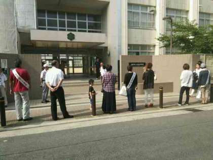 『社会を明るくする運動』の一環で,『朝のあいさつ運動』を行いました。保護司さん,PTA,社協,地域の方等20名以上の方が参加してくださいました。