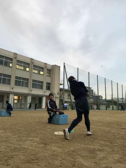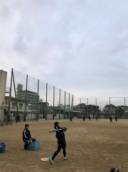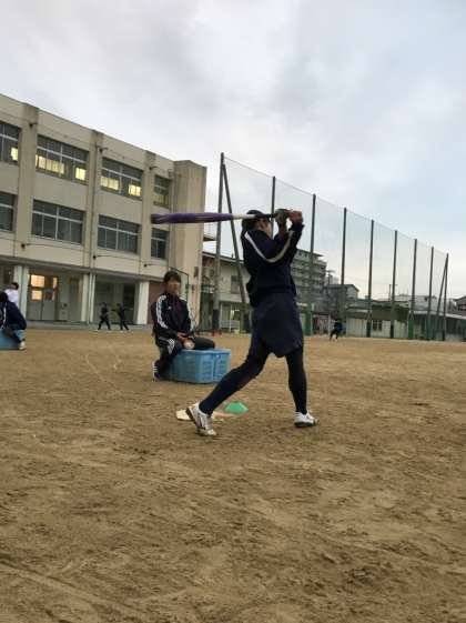 打撃練習をしているソフトボール部員です。