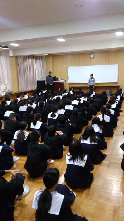 2年生では、やさしい気持ちは必ず伝染する。少しだけその優しい気持ちを行動に移してみようという実体験のお話でした。
