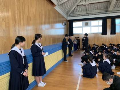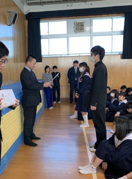 先日行われました、2年生の百人一首大会の結果を受け、表彰状が渡されました。