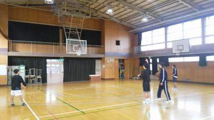 グラウンドではソフトボール部が、体育館ではバスケットボール部が練習をしています。