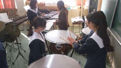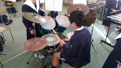 吹奏楽部では、楽器体験を中心にクラブ体験をしています。