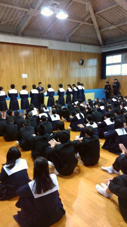 2年生の学年集会でも、マラソン大会の表彰を行いました。