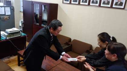 本校PTAのOBGの皆さんで構成されています「むつみ会」から、英検受験料の援助金を戴きました。