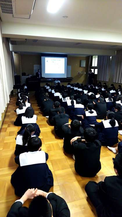 この時間、企業の方に来て頂き、社会に出た時のお話などについて講話を受けています。