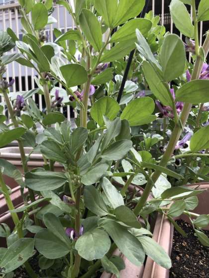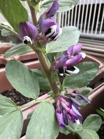 特別支援学級の園芸作業で手塩にかけて育てている、そら豆が綺麗な花を咲かせました。