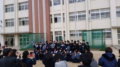 あちこちで写真に納まる卒業生。保護者の皆様のシャッターは止みません。