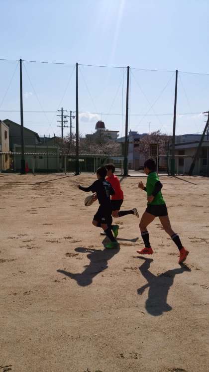 グラウンド、西側ではソフトボール部とラグビー部が練習を始めています。