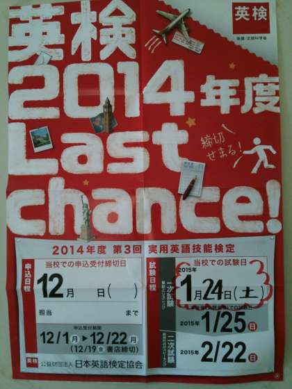 24日(土)は英検全校受検の日です。みなさん良いコンディションで受けてください。