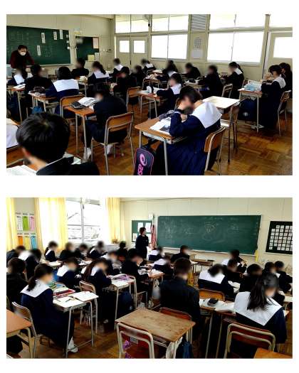 3年生は本日学年末テスト2日目、今日も真剣に取り組んでいます。まもなく、2時間目の国語のテストが終わります。