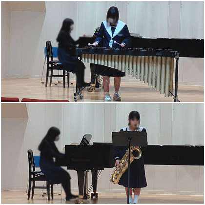 本日、管弦打楽器のソロコンテストに4名の生徒が出場しています。4人共、本番ではこれまでの練習の成果を出しきって頑張りました。 -
