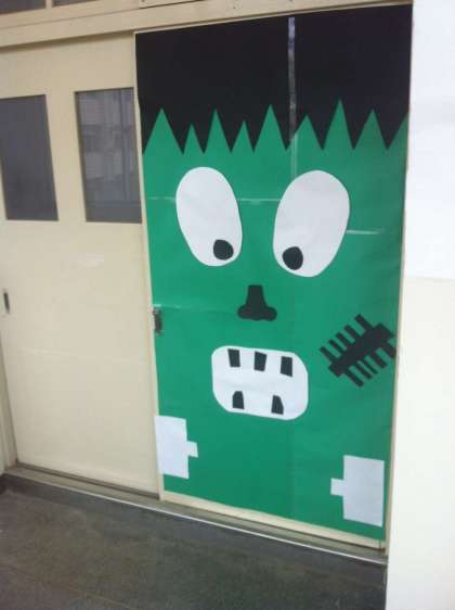 東館2F英語教室の入口です。ハロウィーンも近いし,英語学習の雰囲気を盛り上げるために,Joshua先生が作ってくれました。