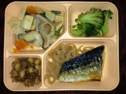 厚揚げやたけのこ、にんじん、こんにゃくなどが入っています。 -