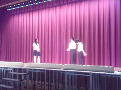 暴風警報が出たら,劇の練習もできないし,明日の芸術鑑賞用の会場設営もできないなあと心配していましたが,警報は出ず,予定通りに授業・行事準備は進捗。