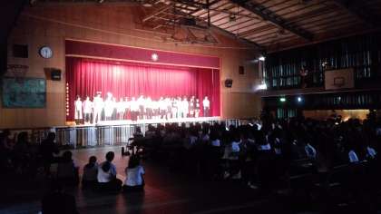 2年生の劇「僕たちのいた沖縄戦」を上演しています。