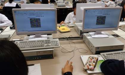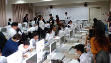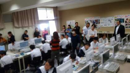 コンピュータを使った技術の授業は、他の先生方にとってとても新鮮で専門的な様子です。様々な角度から参考になるところがあります。 -