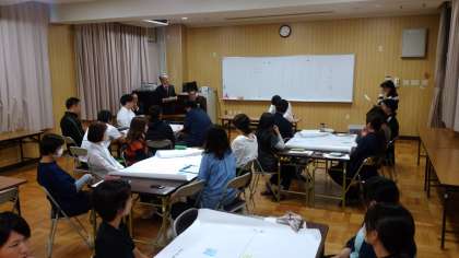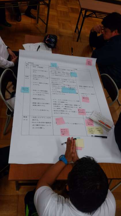 教職員がひとつの授業を参考に、熱心に授業改善を考えながら、この授業の長所や短所、そして自身の授業への参考店などを話し合っています。
