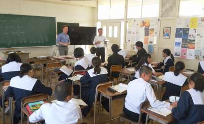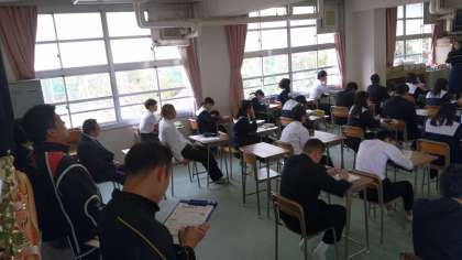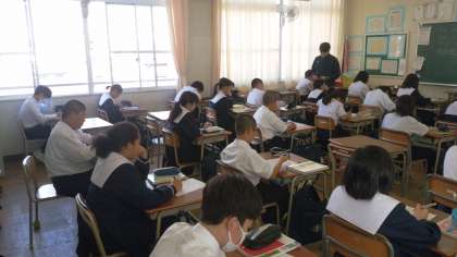 熱心に授業が進んでいく様子を先生方は見学しています。 -