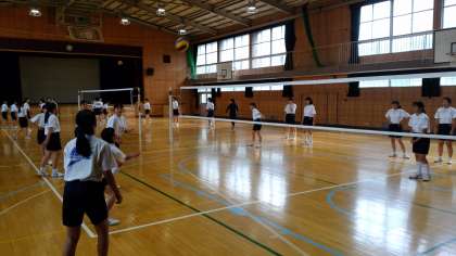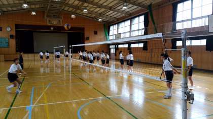 バレーボールをしている2年生。なかなか思ったところへボールは飛んでくれません。 -