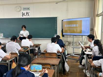 この授業は学年の教員によるローテーション方式で実施されており、さまざまな教員から多角的な視点を学ぶことで、豊かな心を育むことをめざしています。 -