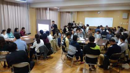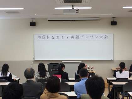 樟蔭高等学校プレゼン大会会場で開会のセレモニーです。
