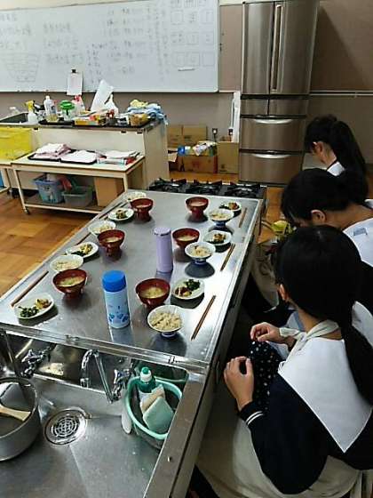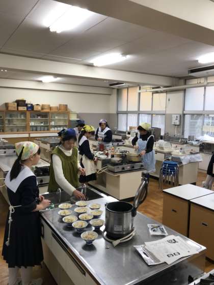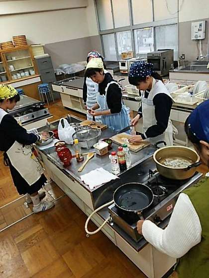 写真は家庭科部と茶道部がシュークリームなどを作っています。 -