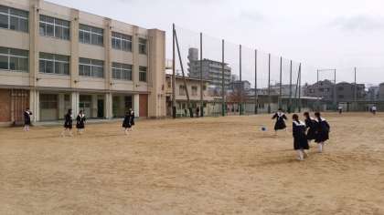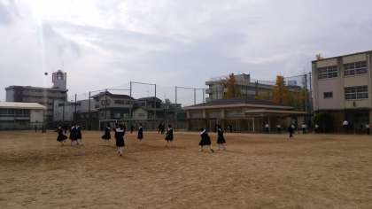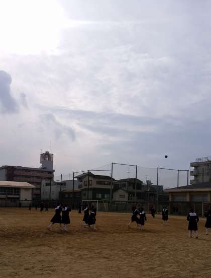 久しぶりに昼休み、グラウンドから生徒たちの声が聞こえています。 -
