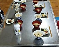 栗ご飯、大根と里芋の味噌汁、大根の葉っぱの炒め物とさつま芋の煮物。