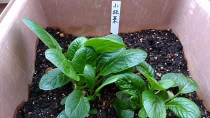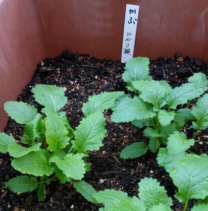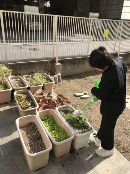 プランターンには、特別支援教室の生徒のみんなが植えてくれた、こんな野菜たちが、とても力強く大きくなりはじめています。 -