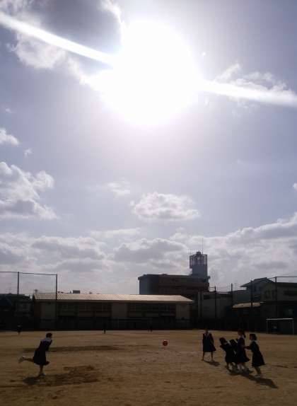 昨日の雨から一転し、晴天の今日。グラウンドもすっかり乾き、昼休みはグラウンドで元気いっぱい体を動かしています。 -