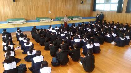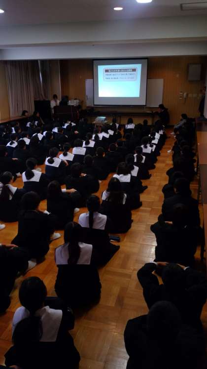 1年生は薬剤師の先生に来ていただき、薬剤乱用防止教室を受けています。
