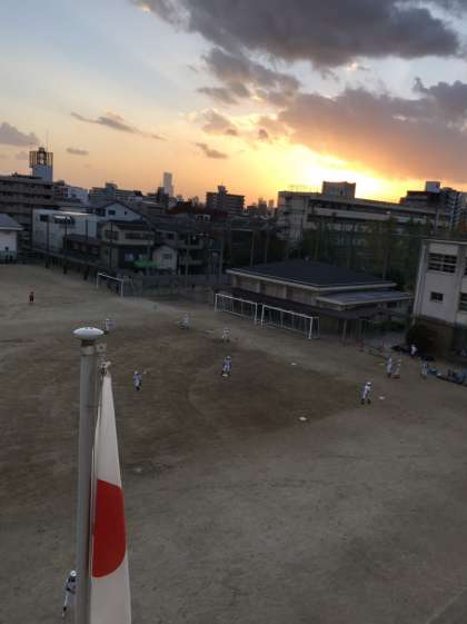 夕日が沈んでしまう時間が早くなってきました。明るいうちに出来る練習をしておきたい部活動の一つです。 -