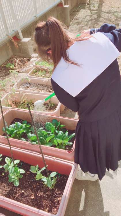 特別支援学級の生徒は少し前に植えた野菜の栽培実習をしています。お世話をして収穫を得る。そんな事から様々な事を学習して行きます。 -