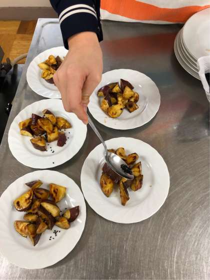 オムライス、大学芋、鶏肉のトマト煮を作ります。