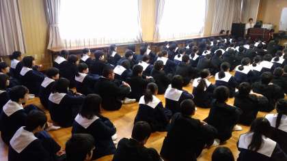 学年集会では、テストが終わってからの気のゆるみの無いよう注意しましょうというお話や職場体験での経験を残していこうというお話でした。 -