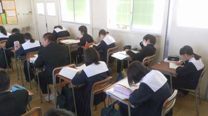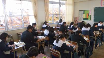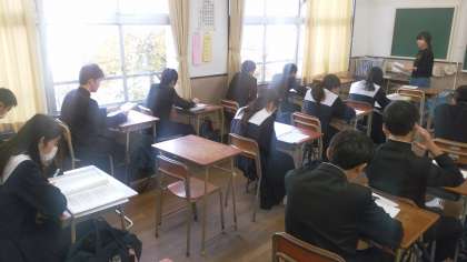期末テストが終わり、各教科ではテストの返却が行われています。自分自身の結果を受けて、しっかり反省し、勉強の仕方や授業への取り組みを各自具体的に考えていかなければと、生徒は真剣に聞き入っています。 -