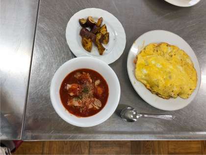 オムライスは仕上げにたまごを焼いて、盛りつけていきました。今日は簡単ですが、とても豪華な調理実習になりました。