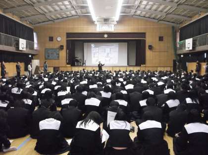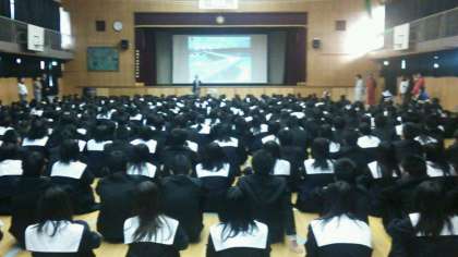 以前よりも3%だけ,それも毎日でなく,週に1回ぐらい休んだっていい,それでも前より+3%の努力をすること。たった3%の努力が大きな結果をもたらすこと。例えば,100円から3%ずつ貯金を始めたら,1年間で億単位の額になると。そういった努力の仕方や,脳を活性化させるためには『音読』がとても優れたやり方だということをお話しいただきました。軽く1時間に及ぶお話でしたが,内容が面白かったのか,生徒の話を聞く態度もよく,講演終了後非常にほめていただきました。