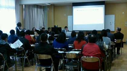 多くの先生が来て,生徒のコミュニケーション活動を活発にするための授業研究を行いました。ちゃんとした授業をするために,先生もしっかり勉強しないといけません。 -
