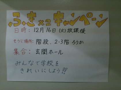 明日はとても寒いです。近隣ではありませんが,インフルエンザの流行している中学校もあります。手洗いうがいを励行し,十分に睡眠をとってください。