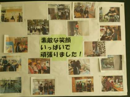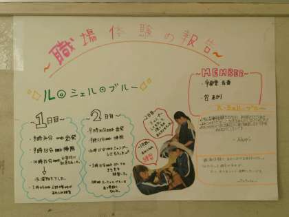 2年生の階(2F)に職場体験の報告が貼ってあります。他学年の保護者の方もご覧ください。