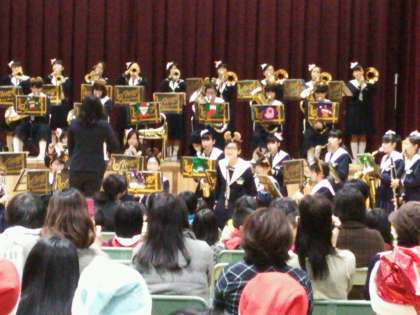 以前にもお伝えしましたが,明日13:00より,体育館で吹奏楽部によるクリスマスコンサートを行います。保育所や幼稚園児が50名ほど聴きに来てくれる予定ですが,保護者の方はもちろん,地域のどなたでもお出でください。生徒が案内します。