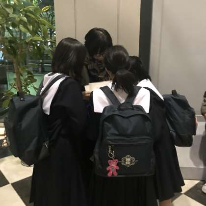 写真は、結果を覗き込む生徒達です。